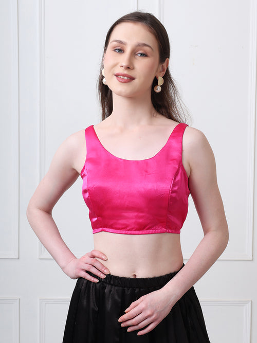 Fuschia Satin Silk Solid Sleeveless Padded Blouse